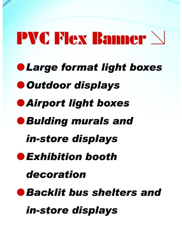 Liicht Box StoffGefëllt dacks an aler Outdoor Reklammen, déi Szennamen benotzt ginn. Zu Akafszentren Mandres an Akafszentren, Liicht Boxstoff gëtt dacks benotzt fir grouss Billboards a Promotiounsposter ze lackelen. Am ëffentlechen Transport, wéi Classiounen an Ënnerwuch vu lëtzebuergesch Këschte Kompetenzen, dat méiglecherweis involvéiert d'Koncisioun trente verbessert. Zousätzlech gëtt d'Luuchtkraaftpunkt deen dobannen an Outdoor Ausgläich benotzt an Aktivitéit Hannergrondnand fir visuell Impakt op d'Aktivitéit ze bidden.